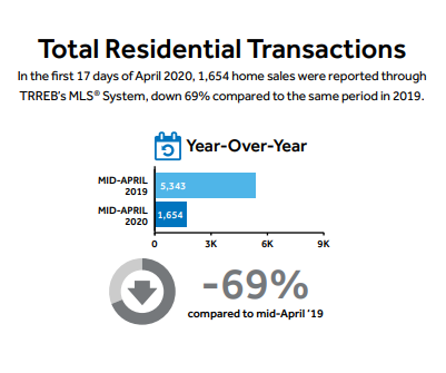 TORONTO, ONTARIO, April 22, 2020 – Toronto Regional Real Estate Board President Michael Collins is reporting results for the first 17 days of April 2020, in order to provide some guidance on the impact of COVID-19 on the Greater Toronto Area housing market:
