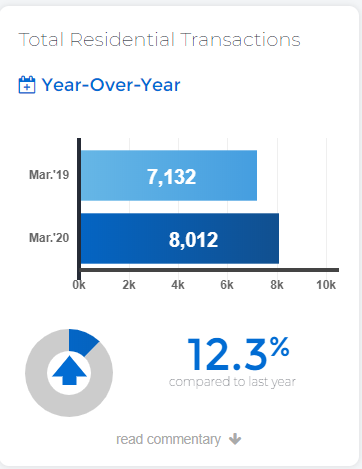 “The overall sales result for March was strong relative to last year, but the impact of COVID-19 was certainly evident in the number of sales reported in the second half of March. Uncertainty surrounding the outbreak’s impact on the broader economy and the onset of the necessary social distancing measures resulted in the decline in sales since March 15. Sales figures for April will give us a better sense as to the trajectory of the market while all levels of government take the required action to contain the spread of COVID-19,” said Mr. Collins.