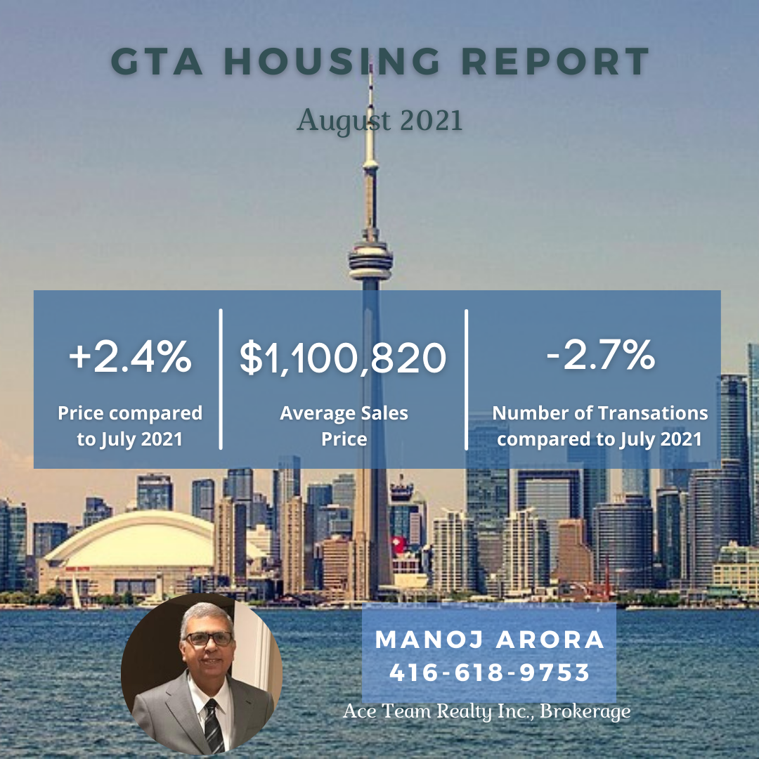 Greater Toronto Area (GTA) Real Estate Market Takes a Breather while the Housing Demand Remains Strong in August 2021