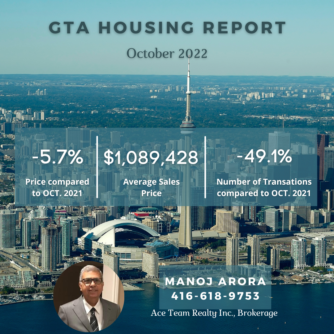 TORONTO, ONTARIO, November 3, 2022 – Despite the continued housing market transition to a higher borrowing cost environment, the average selling price in the Greater Toronto Area (GTA) found some support near $1.1 million since the late summer. GTA home sales continued to adjust to substantially higher interest rates in October 2022, both on an annual and monthly basis. However, new listings are also down year-over-year and month-over-month. The persistent lack of inventory helps explain why the downward trend in home prices experienced in the spring has flattened over the past three months.