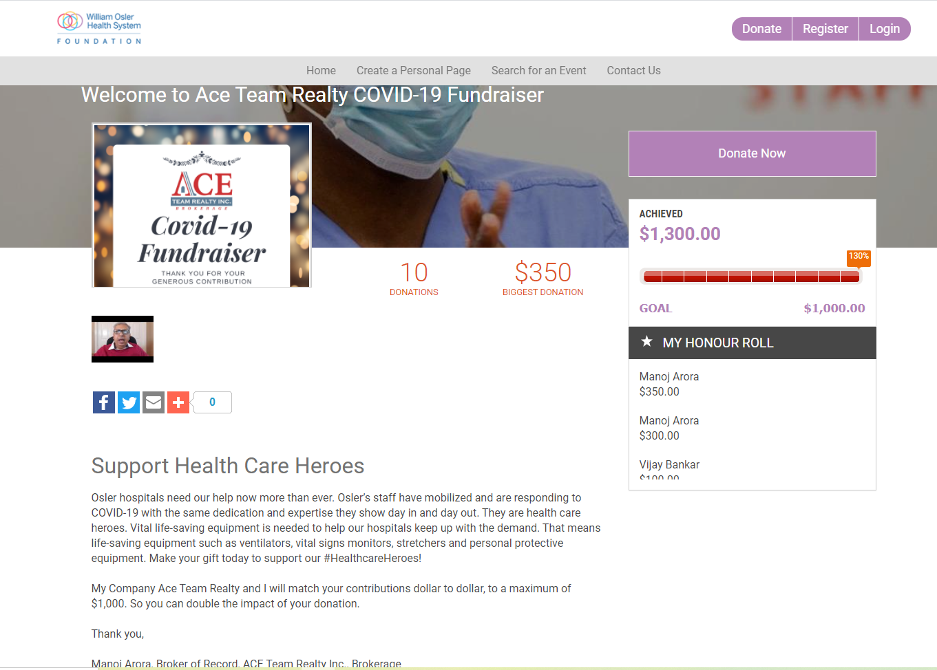 As, you will recall, before Christmas Holidays, I launched a fundraising campaign for our William Osler Health System foundation to help our front line healthcare workers in the Hospitals.