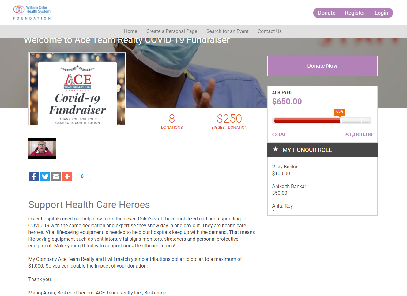I am so grateful that collectively my clients donated $650 and which was matched by me and my company Ace Team Realty and we exceeded our goal and made a total donation of $1,300 to support our #healthcareheroes.